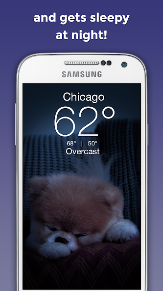 每當您用噓聲檢查天氣時,都會微笑!他根據一天中的天氣和時間變化。